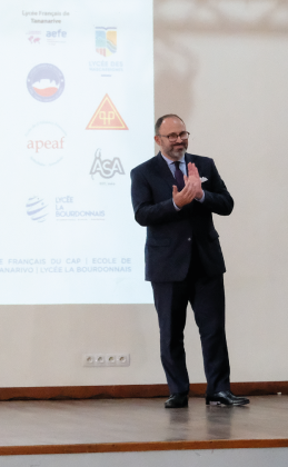 M. Arnaud Guillois, Ambassadeur de France à Madagascar, nous a fait l’honneur de venir remettre les diplômes aux meilleurs délégués lors de la cérémonie de clôture. Il est également intervenu pour expliquer l’importance du travail de représentation effectué par les diplomates dans le monde entier afin de permettre à la coopération internationale de fonctionner.