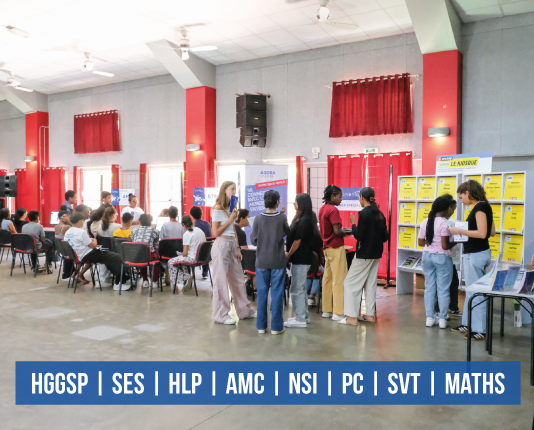 Destiné aux élèves de seconde, le forum des spécialités regroupe dans l’amphithéâtre 2, toutes les spécialités proposées au Lycée Français de Tananarive (08). Cet événement est crucial dans la mesure où le choix des spécialités se fera en classe de première. “Puis je réussir dans cette spécialité avec mes résultats?” “Quelle part de travail personnel est demandé dans cette spécialité?” Durant une demi-journée, les élèves peuvent ainsi poser des questions directement aux enseignants de spécialité présents sur chaque stand.