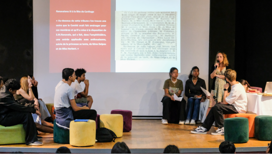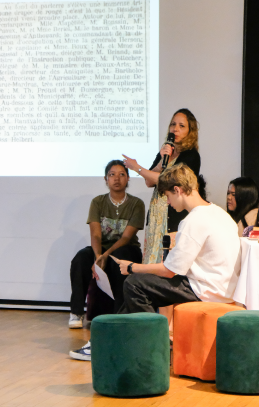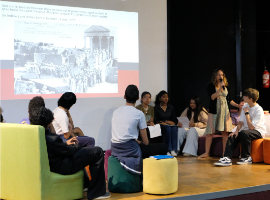 La journée a comporté trois rencontres (8h30–11h30) en amphithéâtre. Hella Feki a partagé sa démarche d’écriture, ses recherches historiques et les questions contemporaines autour du destin de Ranavalona III. Les échanges ont permis aux élèves de confronter leur lecture aux intentions de l’autrice.